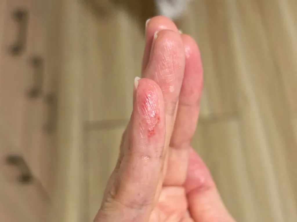 整个手从局部开始依次脱皮,脱完一层又开始脱第二层,脱皮层数多的地方,也露出了鲜红的嫩肉——一周下来,我的双手已经看上去血淋淋了。