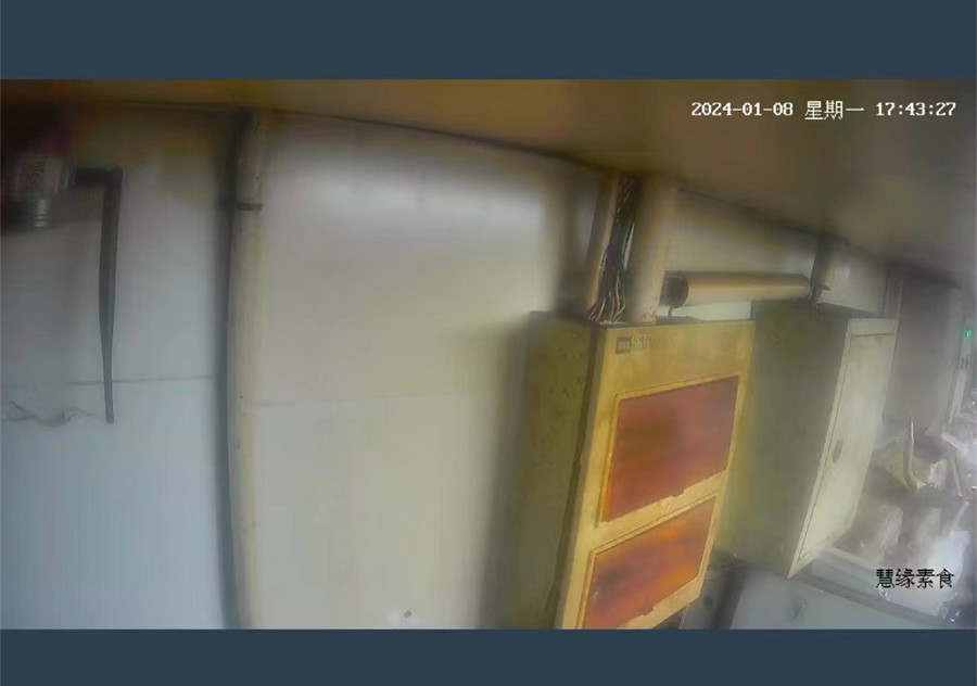 避风塘(金玉兰店)的镜头对着配菜清洗间的一角,虽然也是餐饮加工重要的前道环节,但更多消费者关心的是制作加工及外卖打包环节。慧缘素食(淮海路店)的镜头对着变电箱,画面内没有与餐饮加工直接有关的内容,让人摸不着头脑。