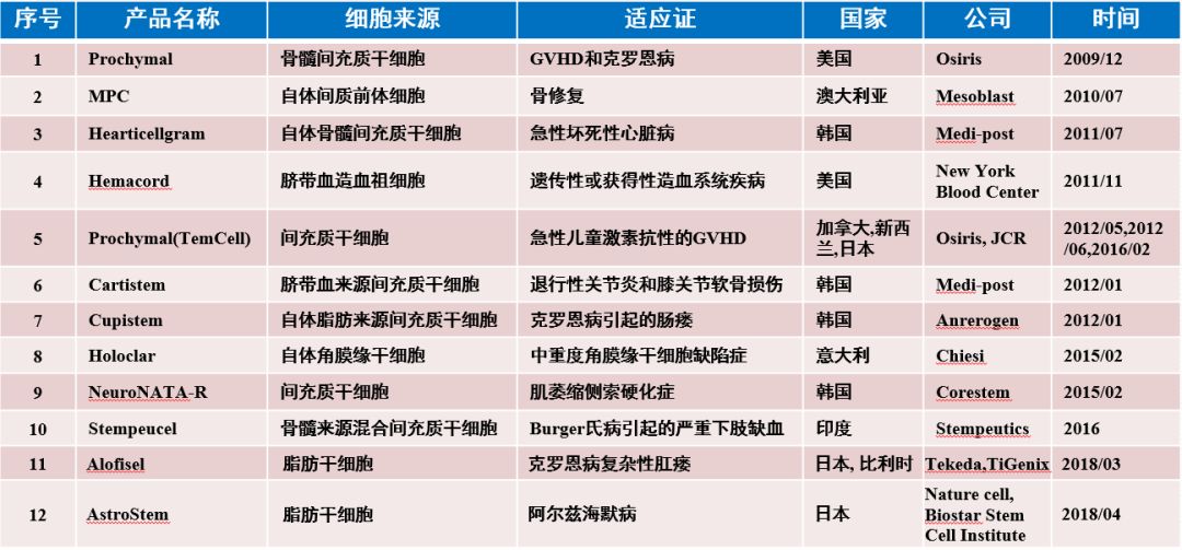 2. 干细胞药物研发尽管全球已经批准了十余种干细胞药物,但新药监管水平最高的美国FDA至今未批准任何一款干细胞药物(不含孤儿药和造血干细胞产品)。干细胞药物研发的先驱——美国Osiris公司早在2009年就完成了一项失败的Ⅲ期临床试验。尽管美国FDA没有批准其产品上市,但基于该公司技术的产品先后在加拿大、新西兰及日本获批上市。目前全球范围内韩国批准上市的干细胞药物数量最多,究其原因或许是韩国的监管政策导向,并不能说明韩国的干细胞药物研发水平最高。在医药领域,美国FDA仍是所有监管机构的标杆,仍然值得中国的干细胞监管机构学习。