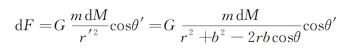 。dm所对应的矢径在y轴上的分量为b=Rsinφcosθ,此分量b正是小质元dm在y 轴方向偏离原点的距离。所以,根据式(1),质元dm受到的沿y轴方向的分力为
