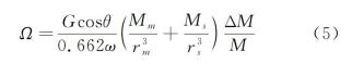其中,Ω 为地轴进动的角速度,I=0.331MR2 为地球的转动惯量[4],ω=7.29×10-5rad/s 为地球的自转角速度。将式(3)代入式(4),并整理后,有
