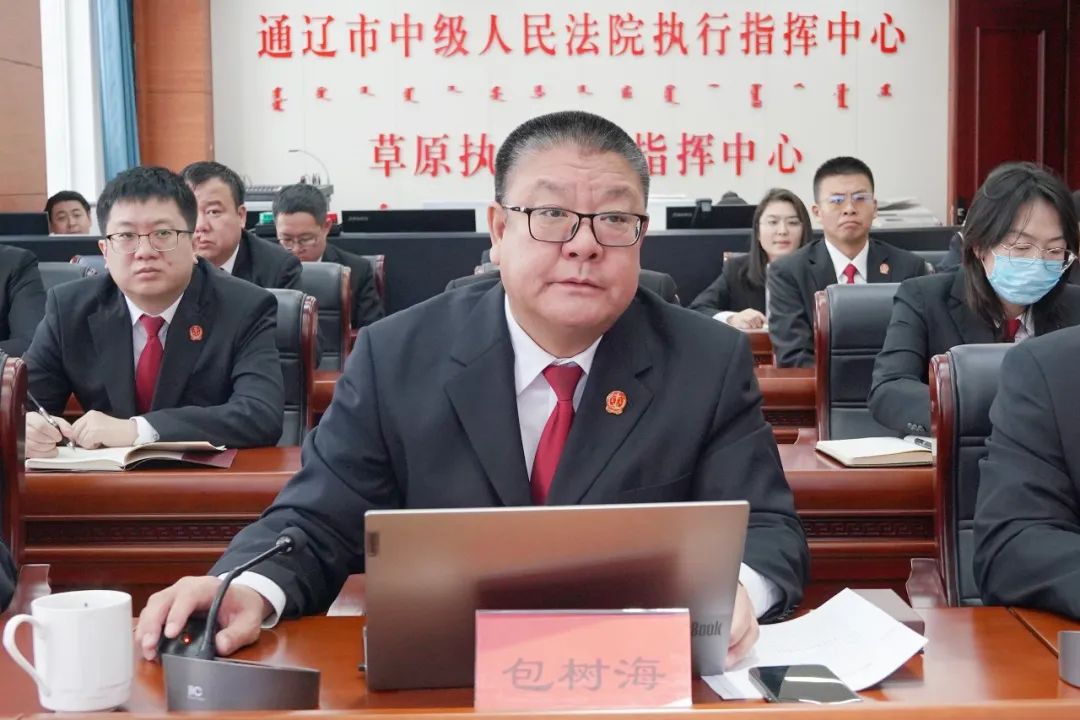 包树海副院长对2023年的执行工作进行了总结并给予充分肯定,同时就如何做好2024年执行工作提出了六个方面要求:一是进一步加强精细化管理,结合实际优化执行模式;二是进一步盯紧执行绩效指标,充分发挥执行指挥中心作用;三是进一步突出执行强制性,加大执行宣传力度;四是进一步完善“草原执行110”机制,积极探索“执破融合”工作;五是进一步推进与公安机关协作机制,凝聚执行攻坚合力;六是进一步强化诉前及诉中保全工作;大力开展司法救助。供稿 ┃ 通辽中院执行局