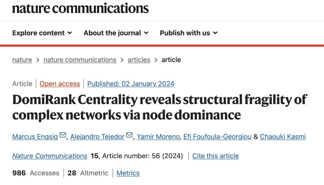 原标题:《探索网络影响力的新视角:DomiRank中心性与网络结构的脆弱性》