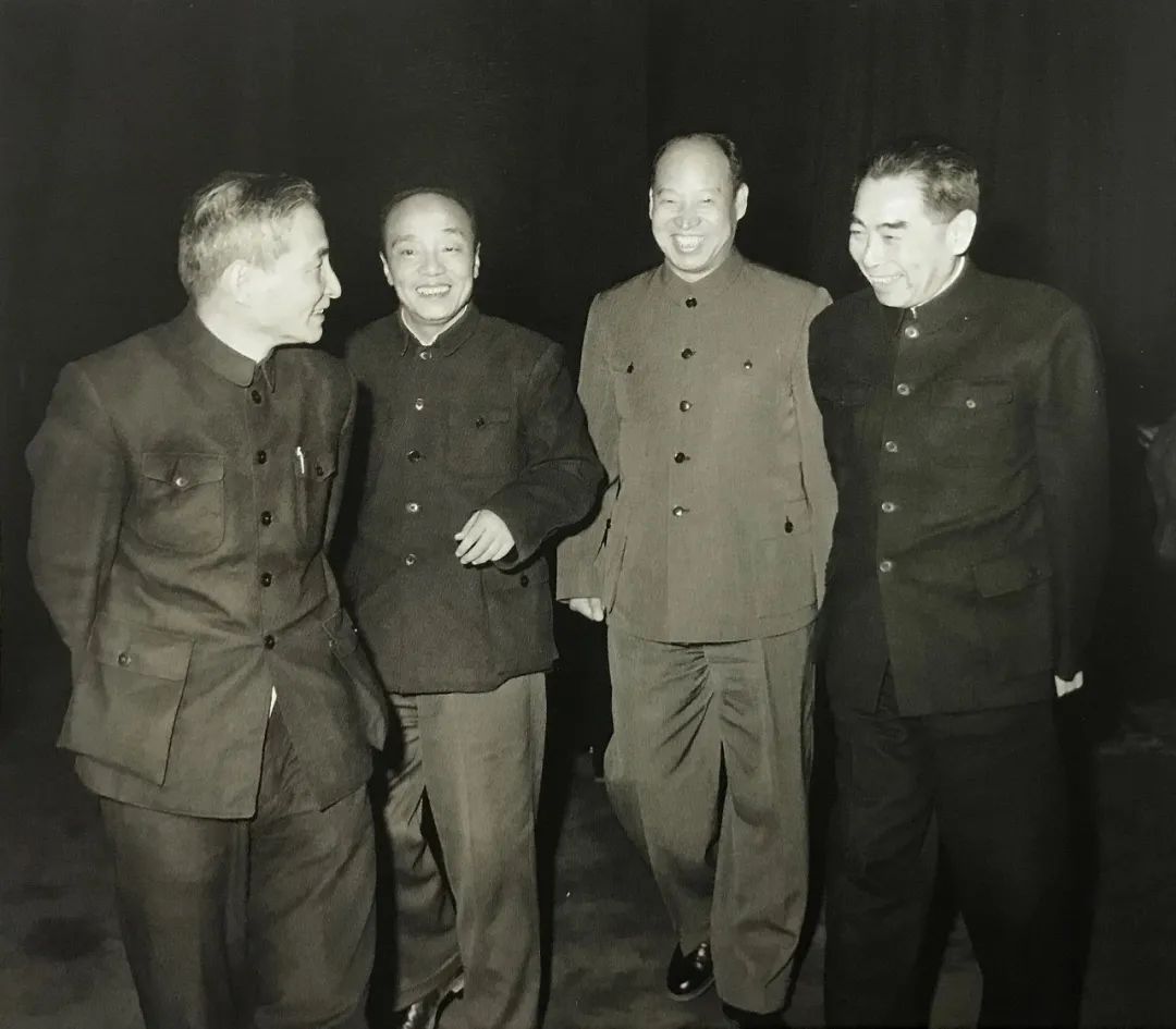 △1962年,陈云和周恩来、彭真、杨尚昆在一起。1961年11月上旬,一次大寒流来势汹汹地袭击了北京城,因为气温陡降,有的机关便提前开始供暖。按国务院规定应该是11月15日开始供暖。陈云严格遵守制度,指示工作人员不到15日不准点烧暖气。由于天气太冷,不久陈云感冒发烧了。