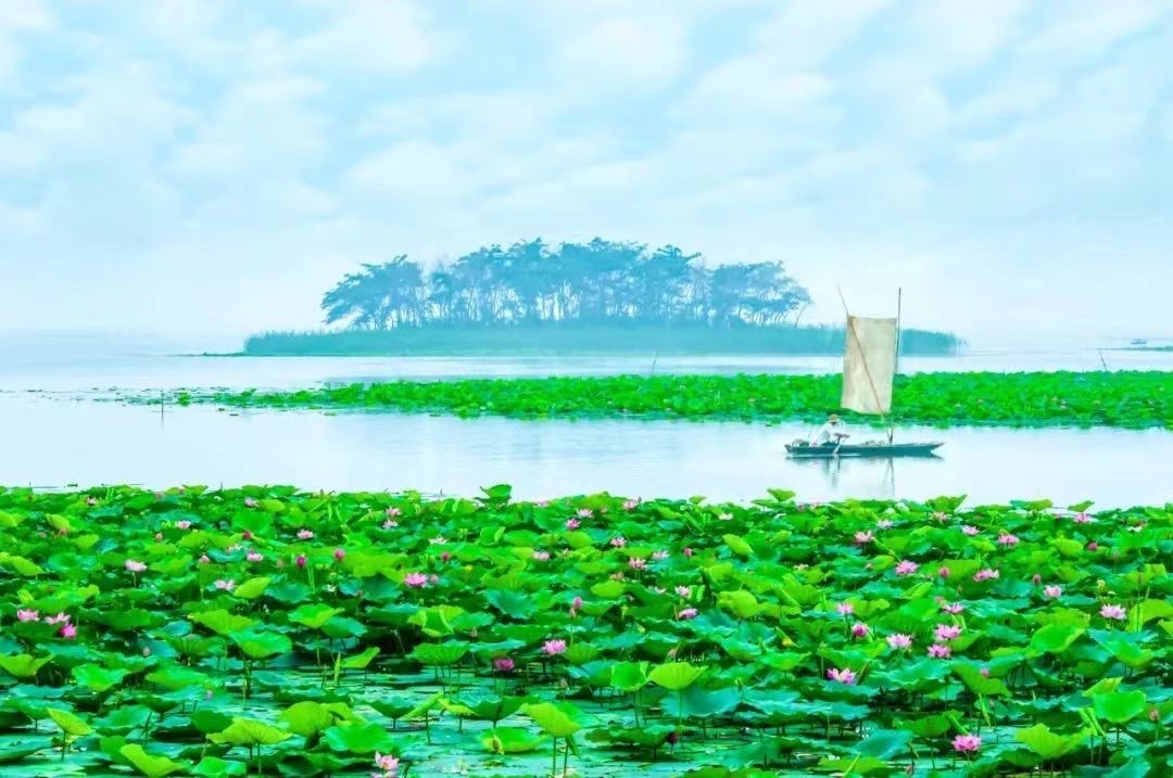 中兴阁坐落于市中区东湖湿地公园中央,每当晚霞落日,忙碌了一天的人们三五成群聚集在“一湖一岛一翠峰”的画境中,一行行白鹭停歇在芦苇梢,不远处几位老者正在弹起心爱的土琵芭,朝霞落日,彩云飞舞,少年们坐在岸边,双脚荡漾水中,两岸杨柳随风舞动,湿地湖泊生态之美在人们笑容中展现出来,经过几年的努力,枣庄市生态环境系统科学布局建起枣庄人身边一座座生态家园,充分体现了绿色高质量发展是人民享受幸福生活的基础。