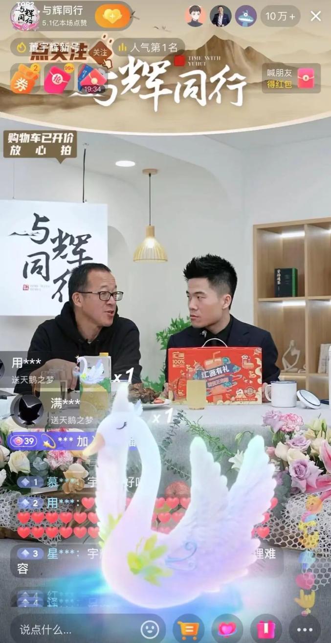 1月9日19点整,与辉同行(北京)科技有限公司官方抖音账号“与辉同行”首次直播,董宇辉和新东方创始人俞敏洪现身直播间。