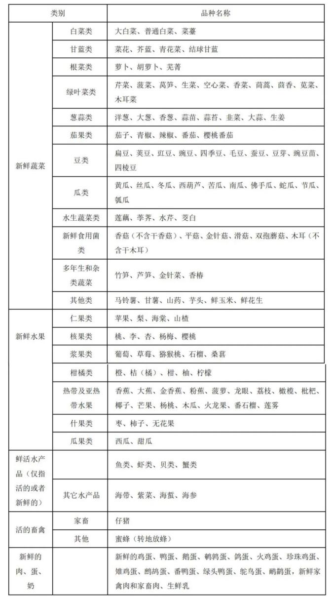 鲜活农产品品种目录