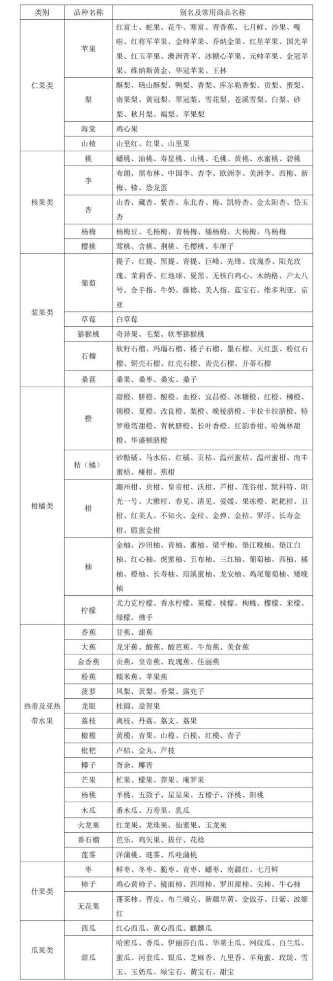 水果别名及常用商品名称对照表
