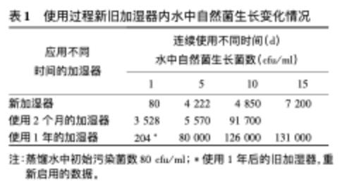同时,新旧加湿器均随着连续使用时间延长,其内装水中自然菌生长菌量不断增加;旧加湿器内水中生长菌数较新加湿器明显增多。
