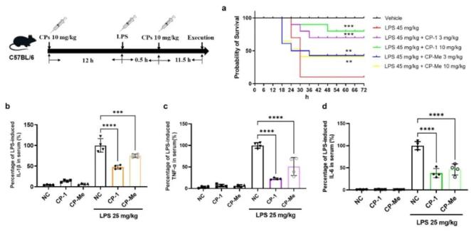 图3. LPS诱导的脓毒症小鼠验证荚膜四糖的体内抗炎活性