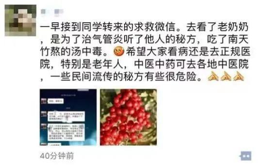 南天竹中含有氰化物,大量食用后致氰化物过量中毒,对神经系统具有麻痹作用。尤其是它的红果实,含有“南天竹碱”等多种生物碱,不但对人类有毒,对其他一些食草动物也有毒。网友评论