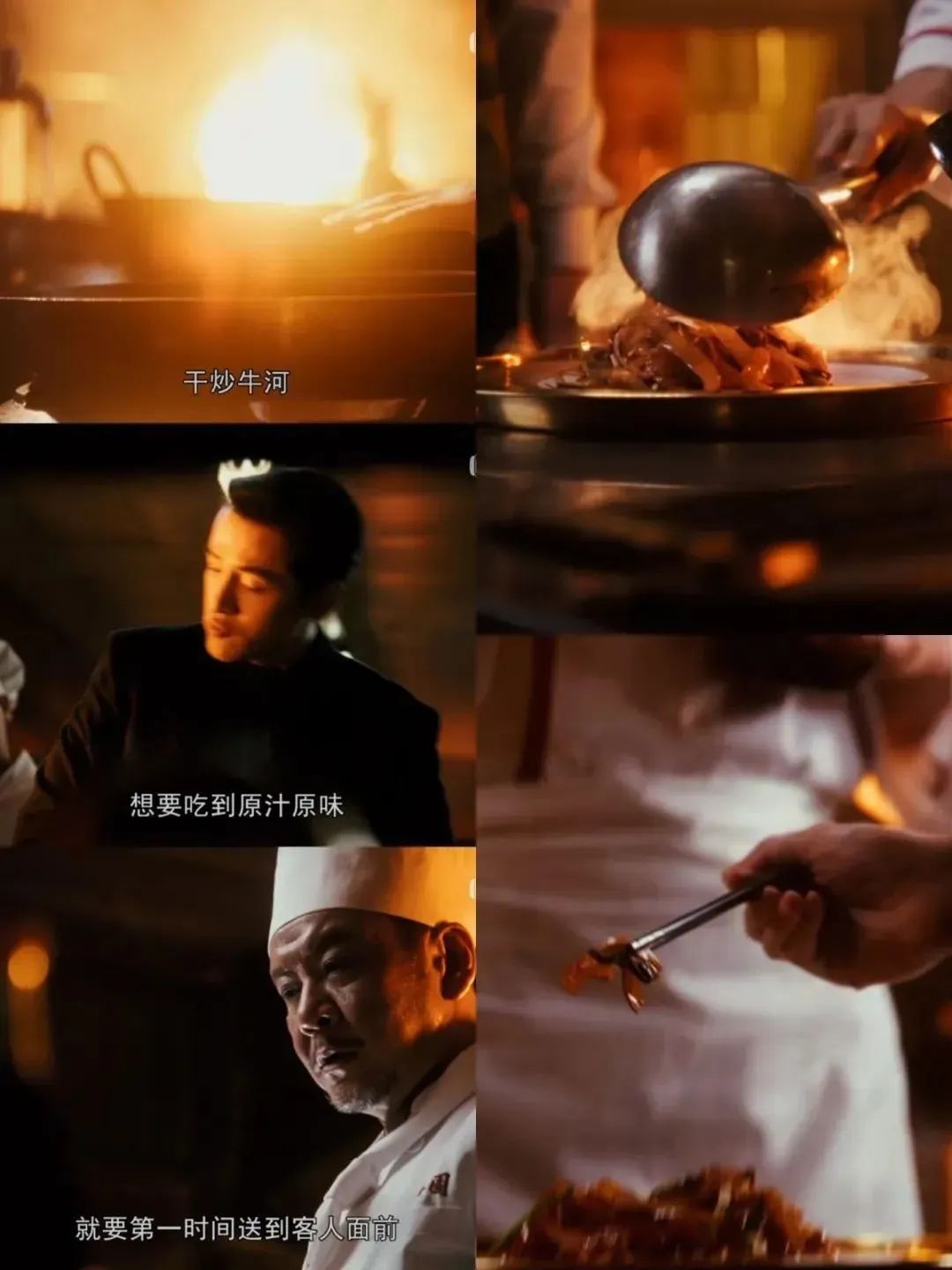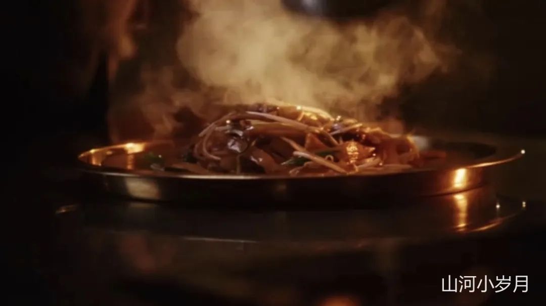 宝总点单的干炒牛河,确实是广东地区用来考验广东厨师炒菜技术的一大测试。顺便说一句,在“繁花食谱”里,我们原本还做了一个夜东京出品的酱油放多了的干炒牛河,本来是作为“对照组”的,不过最终没有用上。