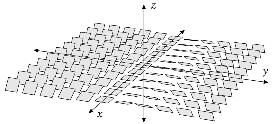 空间中的一张曲面S。那么如果z=z(x)是微分方程的一个解,则(x, z'(x), z(x))会是曲面S上的一条曲线,并且该曲线的切线投影到(x, z)平面时具有斜率y=z'(x)。也就是说,该曲线经过(x0, y0, z0)的切线需要包含在平面(z-z0)-y0(x-x0)=0中,即dz-y0dx=0这个切平面中。dz-ydx=0这个方程就给