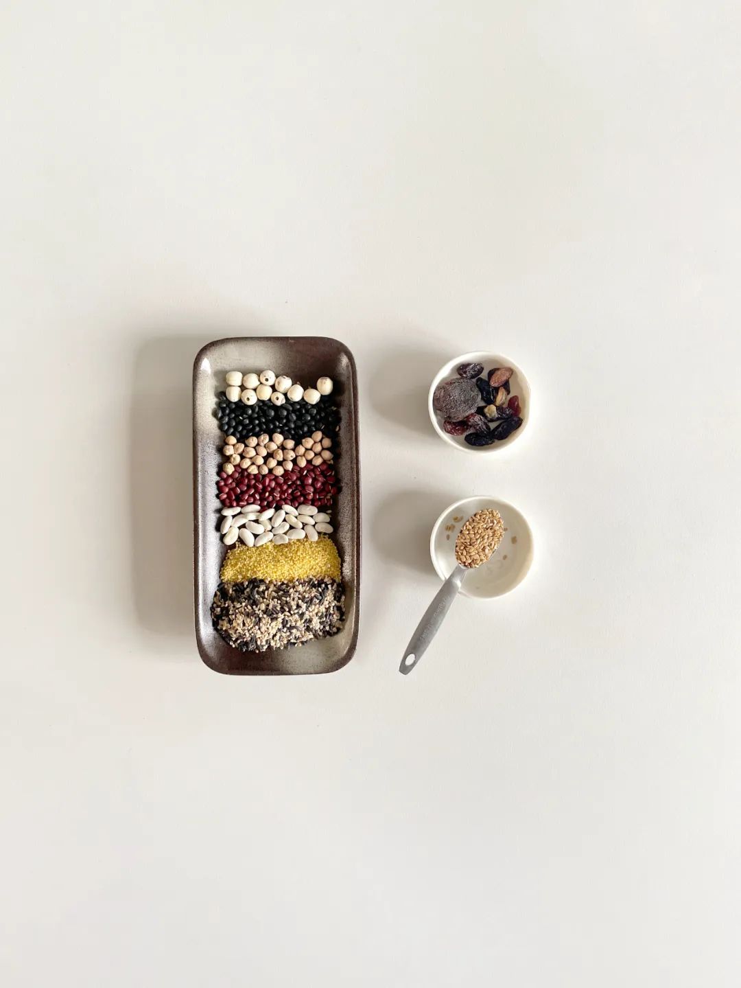 美味步骤我放了这4种豆子(黑豆、鹰嘴豆、赤豆、小白芸豆)、3种谷物(小米、黑米、钢切燕麦米),另外还有莲子。