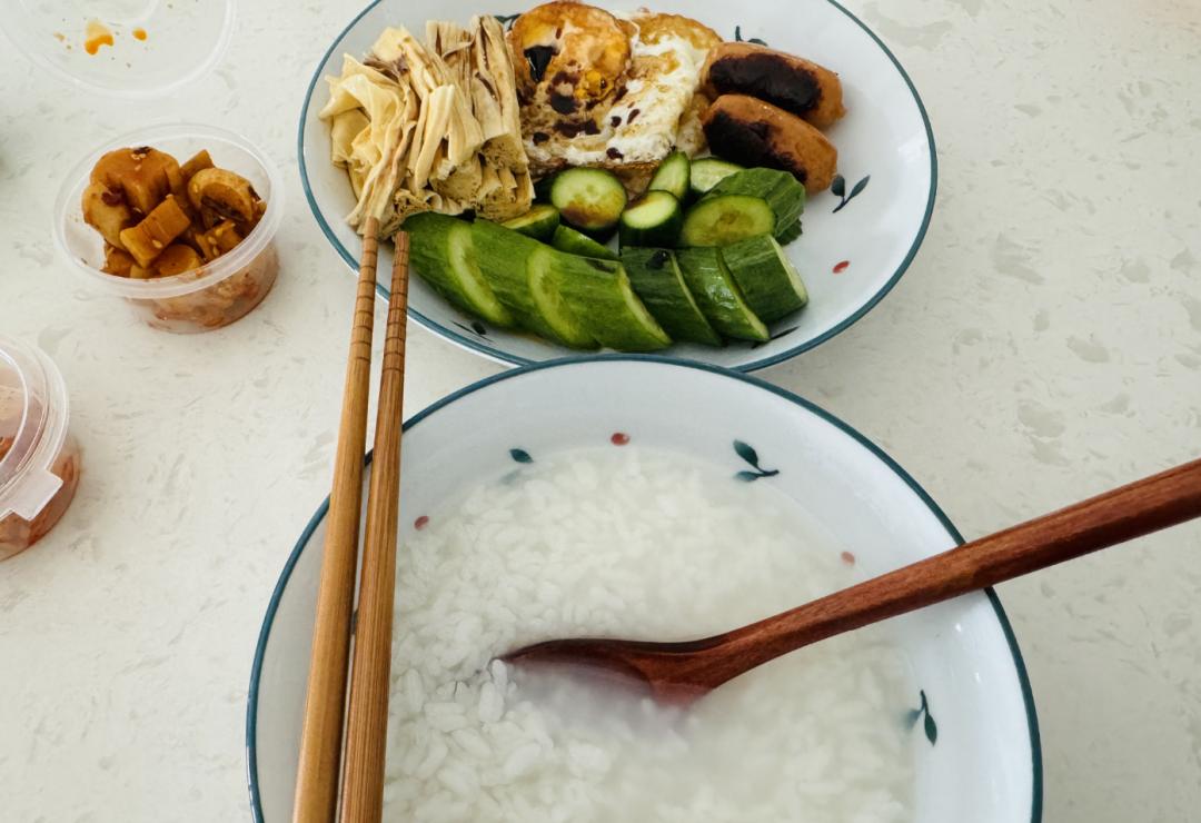 家常泡饭丨拍摄 Yokan剧里宝总的“泡饭搭子”并不简单,要配一套“满堂红”小菜:玫瑰腐乳、油条、苔条花生、酱瓜、萝卜干、咸鸭蛋,若是更讲究些,配黄泥螺、蟹糊、雪菜笋丝都是有的。寻常人家没那么多花头,那就下点酱油、肉松、榨菜拌着泡饭吃。暖暖的泡饭就着爽快咸香的小菜,那滋味确实不要太灵了。
