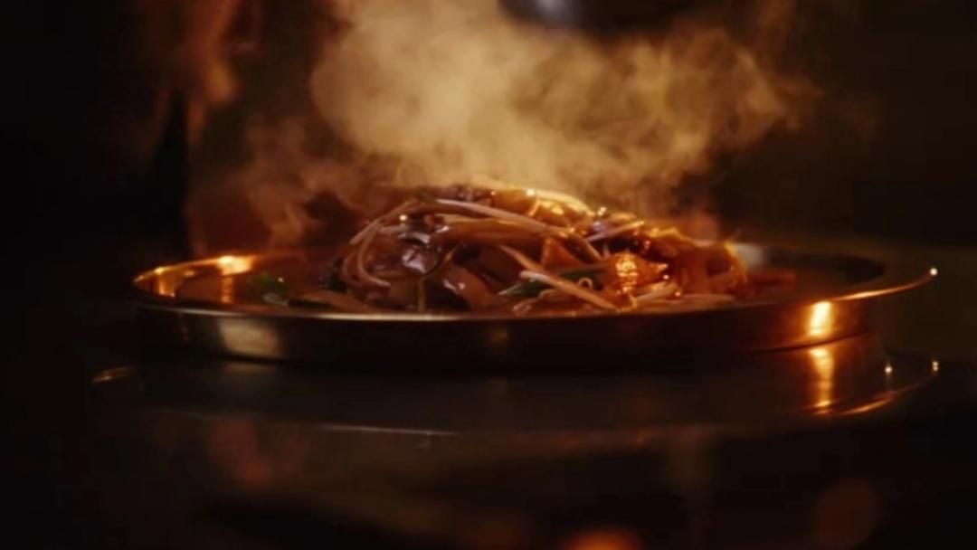 青鱼秃肺拼海参丨《繁花》最令观众难忘的自然要数干炒牛河,这道菜看似简单,实则非常考验大厨的功力。油要大让河粉根根分明,却又不能过多导致口感油腻,比起中式炒锅,西式平底锅更适合。而且离锅后无论上菜速度再快,都不及在灶头边吃到的那一口有镬气,只能说,宝总是会吃的!