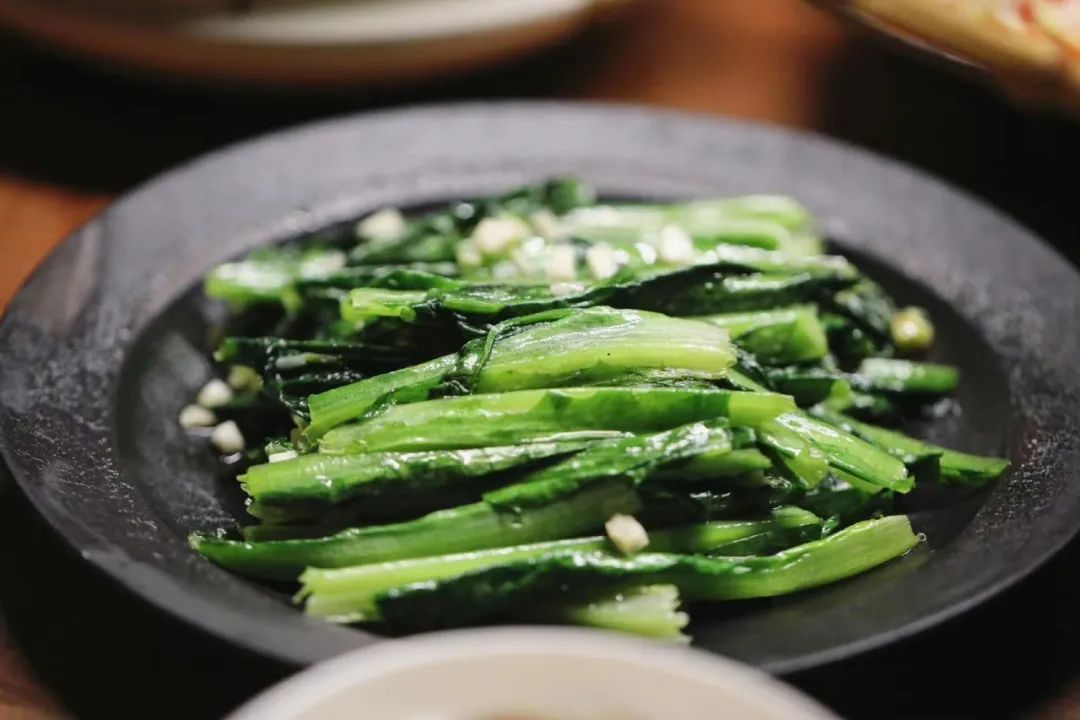 清鲜的芥蓝过油清炒,翠绿出锅,口感仍鲜嫩。将芥蓝放入煲中焗熟,“啫啫”声不绝,揭盖时香气满屋。