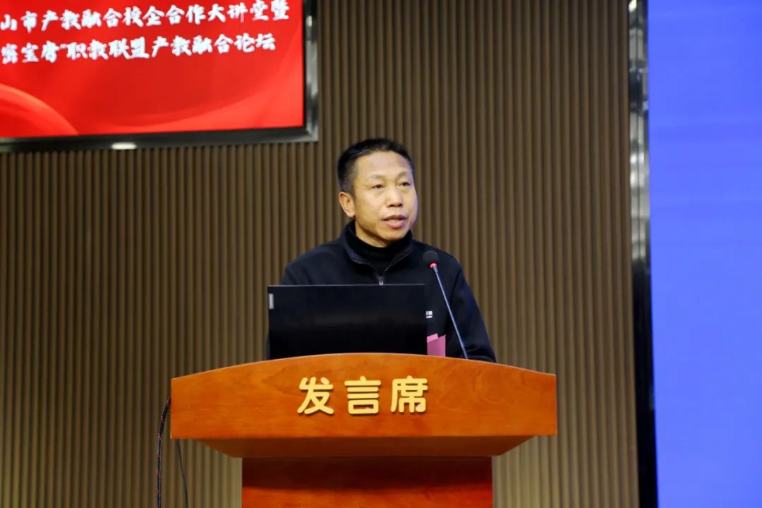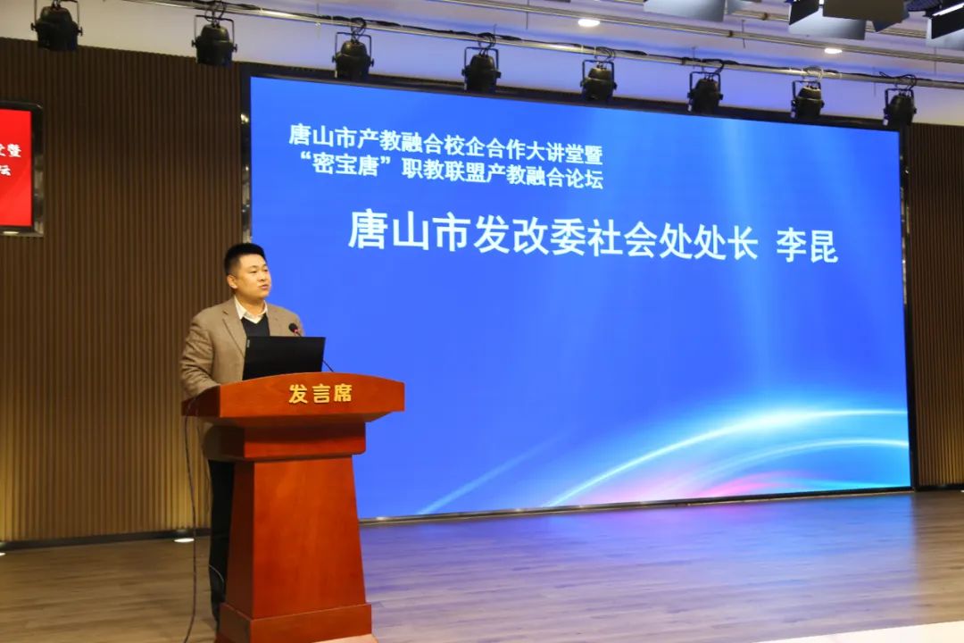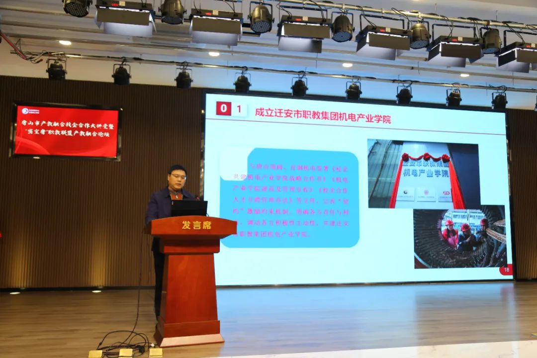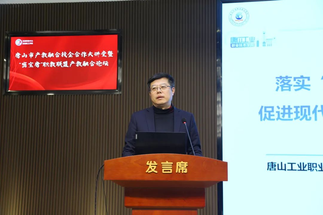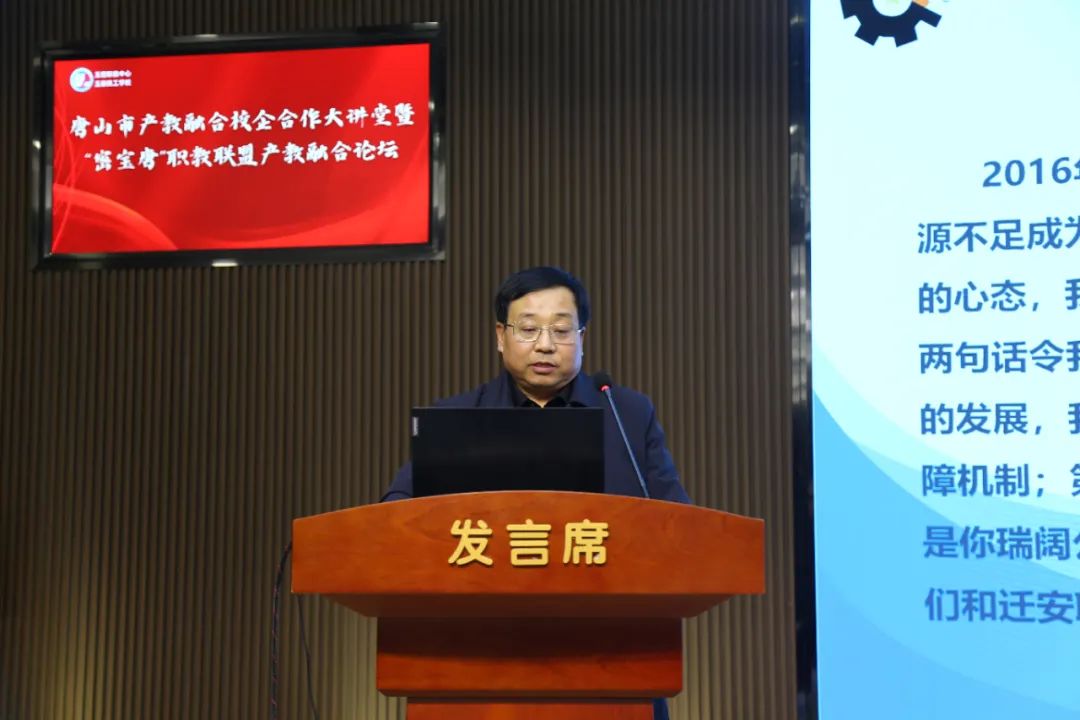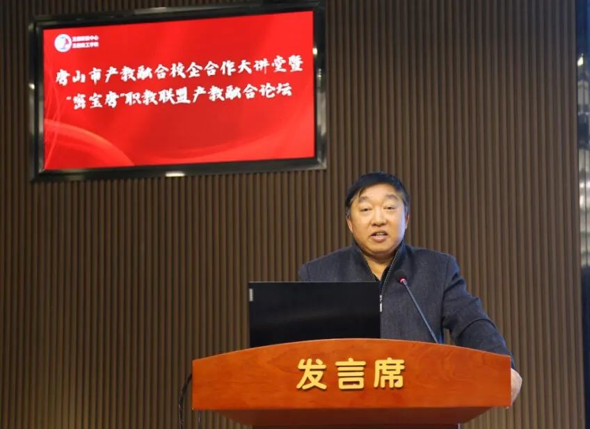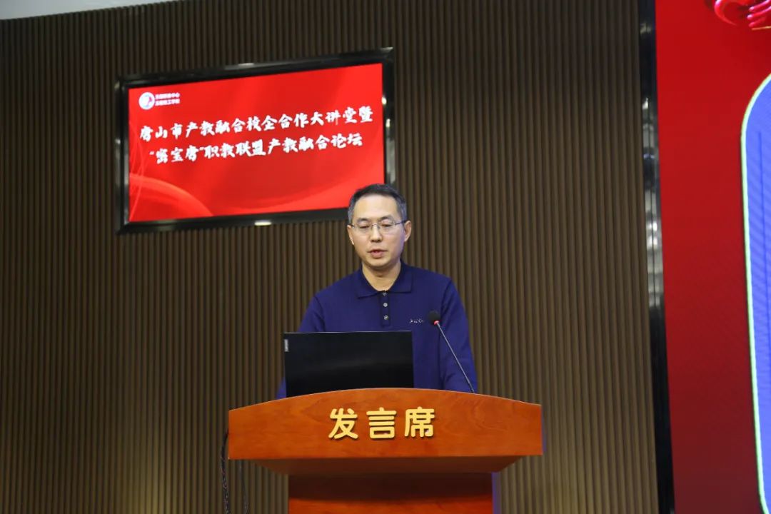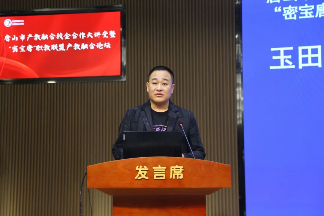 玉田县委副书记、县长兰志刚致辞唐山工业职业技术学院党委副书记、院长张建军,丰南区职教中心党委副书记、校长韩振天,迁安市职教中心党委副书记、校长郑立冬,玉田职教中心党委书记张铁庄,北京市密云区职业学校党委副书记、校长金政财,天津市宝坻区职业教育与成人教育中心校长孙志强,代表京津唐中高职学校在产教融合校企合作方面的做法和案例进行了分享;中车唐山机车车辆有限公司副总工程师尹方、唐山海森电子股份有限公司副总经理鲁志刚、唐山瑞阔自动化设备有限公司首席执行官王智明代表全市企业进行了发言。大家表示积极汇聚产教优质资源,深入开展产教融合校企合作,实现职业教育与产业发展的无缝对接。