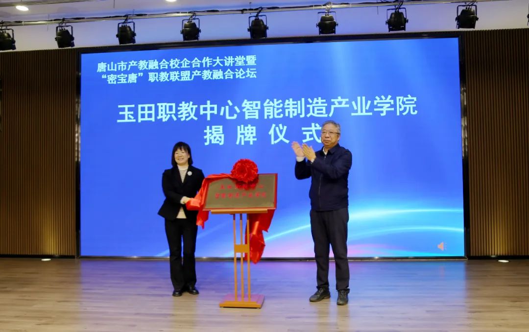 为深入落实推进产教融合试点城市建设,深化职业教育产教融合、校企合作,全面提升职业教育发展质量,1月11日上午,由唐山市教育局主办的产教融合校企合作大讲堂暨“密宝唐”职教联盟产教融合论坛在玉田职教中心隆重召开,玉田职教中心智能制造产业学院揭牌仪式也同时举行。