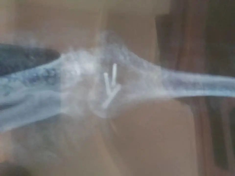 “不做不行!你看”,医生指着X光片中肘关节的位置说,“肱骨下端这里骨折了,而且已过去了一个星期,再拖下去骨头会坏死的”。