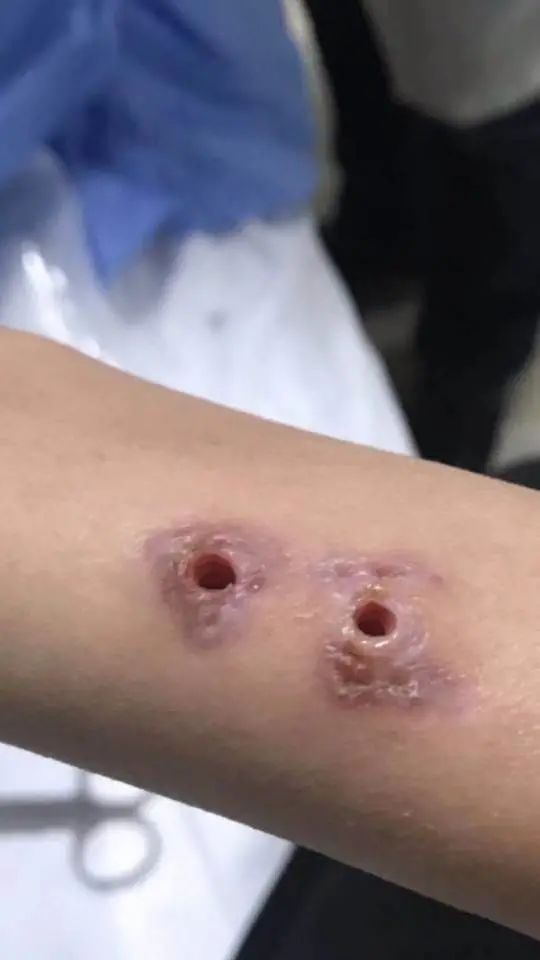 我手腕和肩膀上出现了四个黑乎乎的洞,用手电筒照能看到骨头 屿明 轻触阅读原文