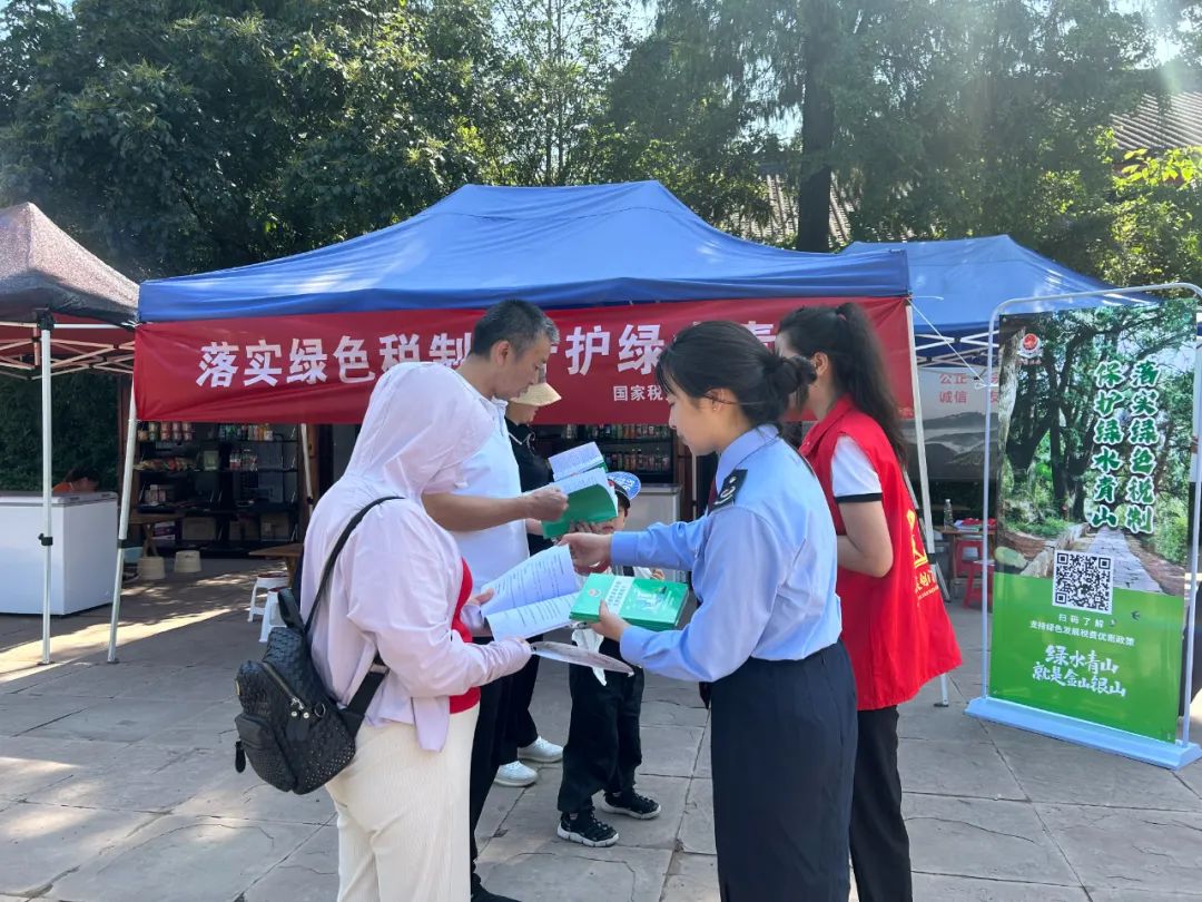 向游客宣传绿色税费政策剑阁县税务局以培育和践行社会主义核心价值观为主线,推进文明礼仪、文明交通、文明餐桌、文明上网、勤俭节约教育、诚信教育等文明风尚活动入脑入心入行动。深入组织开展“我们的节日”主题活动,弘扬中华优秀传统文化,加强行业规范守则教育,通过升国旗、重温入党誓词、参观红色教育基地等形式传播主流价值,让践行社会主义核心价值观在全局党员干部中蔚然成风。树立精神标杆,持续开展“道德模范”“身边榜样”等学习实践活动,在全局培育崇德向善的文明风尚,持续提升文明创建工作的渗透力和感染力。