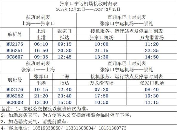 张家口宁远机场-万龙滑雪场 免费接驳车