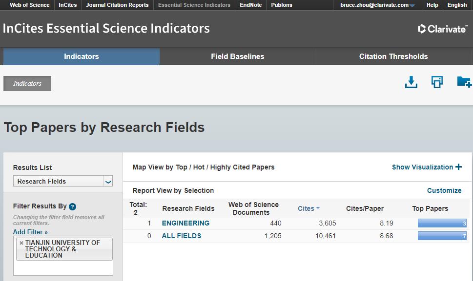 据悉,ESI数据库共分22个学科领域,是基于科睿唯安Web of Science(SCIE/SSCI)所收录的全球12000多种学术期刊的1000多万条文献记录而建立的计量分析数据库。该数据库以10年为1个周期,对全球所有大学及科研机构的SCI、SSCI论文及其引用情况等进行统计和比较,按论文被引次数排列在前1%的学科方可进入ESI学科排行。Science Technology
