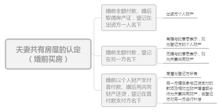 (1)夫妻一方婚前全款买房或还清所有贷款、婚后才取得房产证,房屋登记在出资方一人名下的,应认定为出资方的个人财产。
