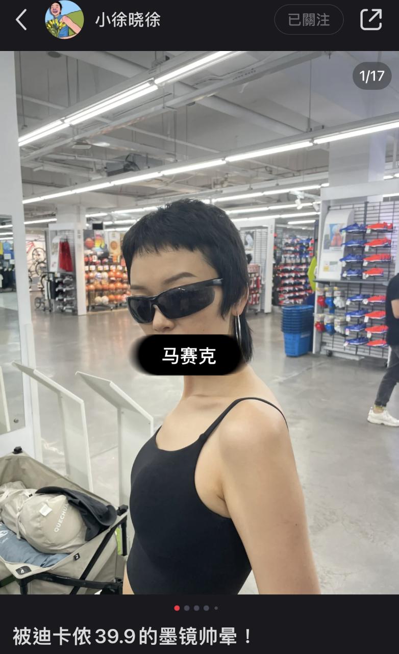 图源小某书@yinyingo因此那些把墨镜视作刚需的人,有时甚至完全不在意墨镜的牌子,迪卡侬99元的徒步偏光镜,也可以成为朝阳人的墨镜平替。