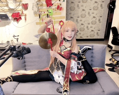 火了之后,淘子自己准备了桂乃芬的 COS 服,有时候还会搞搞二创,带着桂乃芬的假发,穿着其他角色的衣服。可是没有人觉得有问题,在观众眼中,崩铁里的桂乃芬,就该是淘子这样的人。