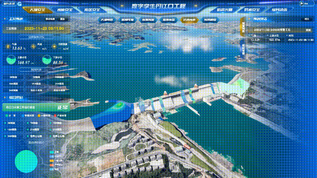 2023年汛期,丹江口水库首次运用数字孪生技术保障库区满蓄高水位条件下的“三个安全”。应用数字孪生丹江口大坝安全建设成果,分析推演蓄水过程中的大坝安全性态,为汉江秋汛防御与汛后蓄水双胜利提供了前瞻性、科学性、安全性决策支持。