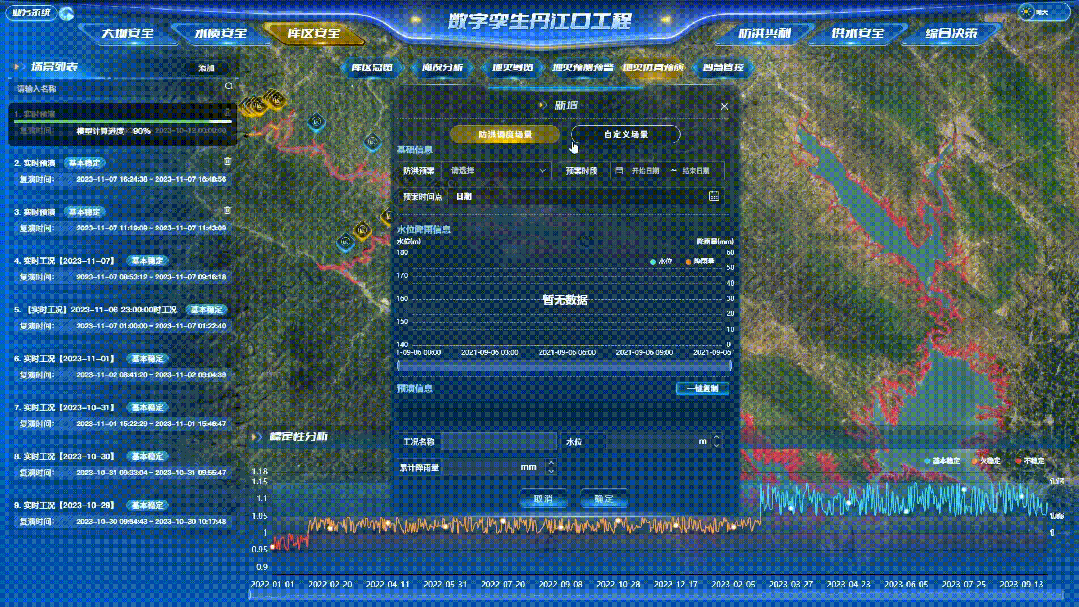 同时,数字孪生丹江口工程水质安全功能融合了监测感知、机理模型、三维仿真等技术,通过多源异构数据、模型集成与多业务融合,建设水质安全模型库、知识库,构建水质安全“四预”功能体系,实现丹江口水库水质监测分析、在线推演、态势预演和预案管理等功能。