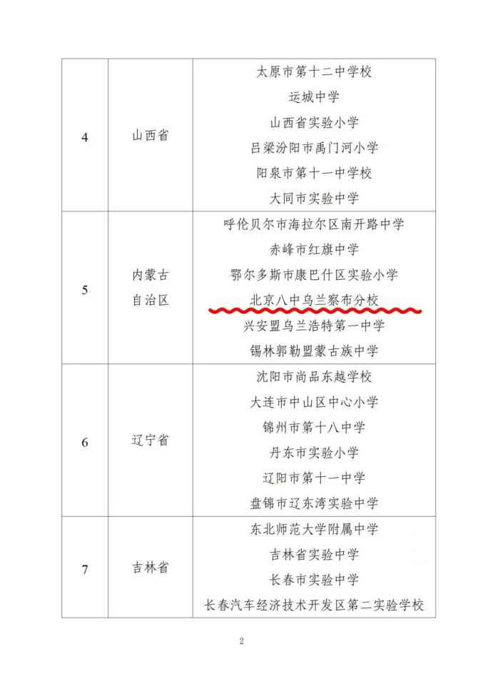北京八中乌兰察布分校入选
