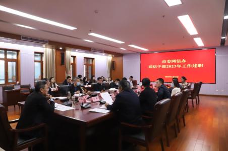 市委网信办各科室主要负责同志汇报了2023年工作情况及2024年工作计划,其他工作人员分别汇报了2023年度各自工作开展情况,各分管领导针对分管领域工作进行现场点评。