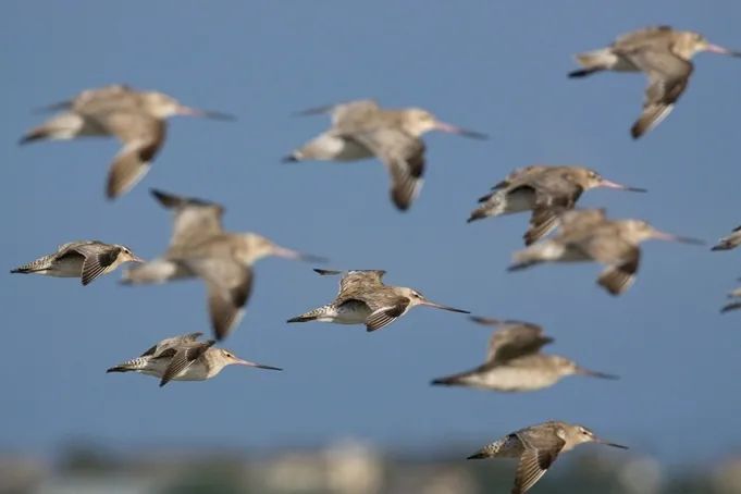 2022年10月13日,一只卫星标签编号为234684的幼年斑尾塍鹬从美国阿拉斯加南下塔斯马尼亚,连续11天不间断飞行了13560公里,打破了候鸟单次不间断飞行的最远纪录。而它付出的,不仅是在出发前将体重增加一倍,为飞行储蓄脂肪,还要压缩吸收掉1/4的消化器官,以减少长途飞行中不需要的重量,同时加大心脏的体积,以便将血液更有力地泵送至飞行用的肌肉。斑尾塍鹬的脚上没有蹼,一旦降落在水面上,便没有办法起飞。塔斯马尼亚鸟类保护组织(BirdLife Tasmania)的组织者埃里克·沃勒(Eric Woehler)表示,这只鸟在这场“没日没夜的旅途”中大概“瘦了一半以上”。