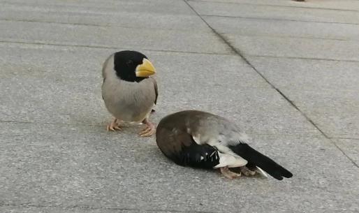 一只黑尾蜡嘴雀因“鸟撞”而死 ©昆山杜克大学 王梓峰同样,鸟类在白天看到反光玻璃上映照出的植被、天空等,或透过透明的玻璃看到另一侧的植物或空间,误以为可以穿行,从而直接撞上玻璃,也会发生鸟撞事件。