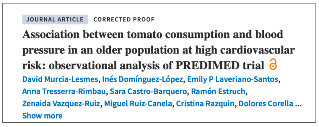 ②Association between tomato consumption and blood pressure in an older population at high cardiovascular risk: observational analysis of PREDIMED trial.