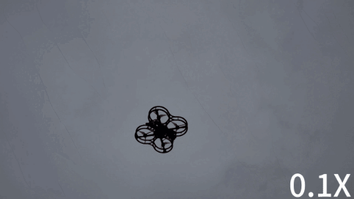 图为仅一个螺旋桨工作的四旋翼无人机飞行动图(0.1倍速)。(科研团队供图)“如果部分螺旋桨失灵,无人机整体平衡就会被打破,机身会像陀螺一样自转起来,螺旋桨出现‘公转’。借助这种现象,我们研发的算法能让正常运转的螺旋桨‘分身’,提供全部的升力——这好比打乒乓球,如果一个人运动速度足够快,可实现自己发球、自己跑到对面接球,如此往复,完成一个人的球赛。”北航教授、该团队成员全权说。