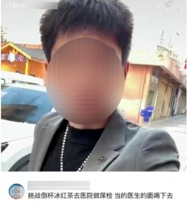 ▲挑战视频截图之后,袁某带着摄影人员,拍摄了自己到昭通市某医院做尿检并喝下待检“尿液”(实为饮料)的全过程。通过剪辑后,袁某将视频发布到两个短视频平台,迅速引起大量网民浏览、关注。袁某的行为扰乱了医院的正常办公秩序,已涉嫌寻衅滋事。