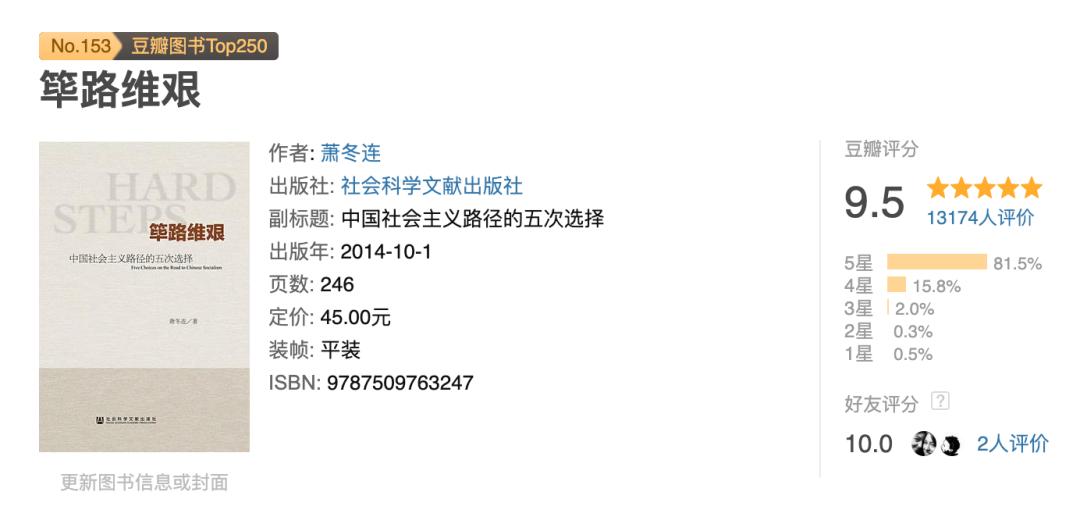 我承认我是被标题骗了,本来是当写作提高书买的,结果读了发现完全不是那么回事。与其说作者是在教你写作,不如说他是在教你怎么进行逻辑思考。我本身是个hr,职业需要工作中我会接触很多不同的人。经常有人来找我,和我说了一堆,我都得问一句:“你的需求是什么?”说了一堆,都是问题的陈述,表达自己的苦恼,但是对我来说都是无效的信息,我不知道他找我到底想做什么。这里面就是时间的浪费。包括今年我也做了些继任者访谈。方法看起来再科学,指标再量化,评价其实还是主观的。就我而言,评价一个人就是看他能不能说明白一件事,告诉我目前的情况是什么,问题在哪儿,预计的措施是什么,措施各自的利弊是什么。所以我给某一个职场人都衷心推荐这本书,学会将逻辑思维用于日常沟通中,小的来说提高沟通效率,长远的来说也许也能在晋升上有所助力。4. 《荜路维艰—中国社会主义路径的五次选择》—萧东连