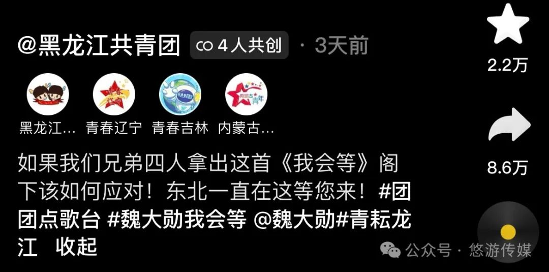 近日,黑吉辽蒙东北F4另辟蹊径,联合共创发布了宣传视频《我会等》,还配上文案“如果我们兄弟四人拿出这首《我会等》阁下该如何应对!东北一直在这等您来!”那为啥东三省秒变东四省了呢?那有这好事,必须得把能带上的兄弟都给带上啊!