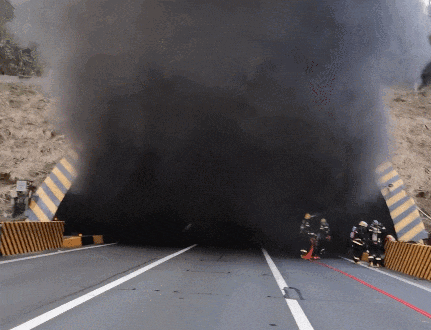 消防人员到场后进入隧道侦查火场情况
