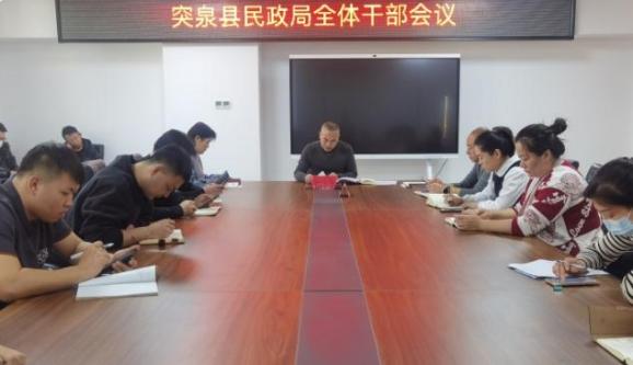 1月17日下午,民政局召开全体干部会议,传达落实中共突泉县第十五届委员会第五次全体会议暨全县经济工作会议精神。围绕会议精神,安排部署2024年民政工作和安全生产、困难救助、廉洁过节等当前重点工作。民政局全体干部职工、三级单位负责人参加会议。县国家保密局