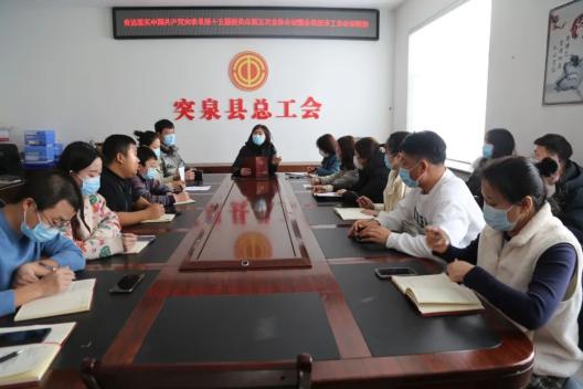 1月17日上午,县总工会召开全体干部会议,传达落实中共突泉县第十五届委员会第五次全体会议暨全县经济工作会议精神。要求全体干部认真学习贯彻落实会议精神,并紧紧围绕会议精神,持续推进“旗县级工会加强年”建设、产业工人队伍改革,做好做实“四季服务”,竭诚服务职工群众,扎扎实实为职工群众做好事、办实事、解难事。县政务服务局