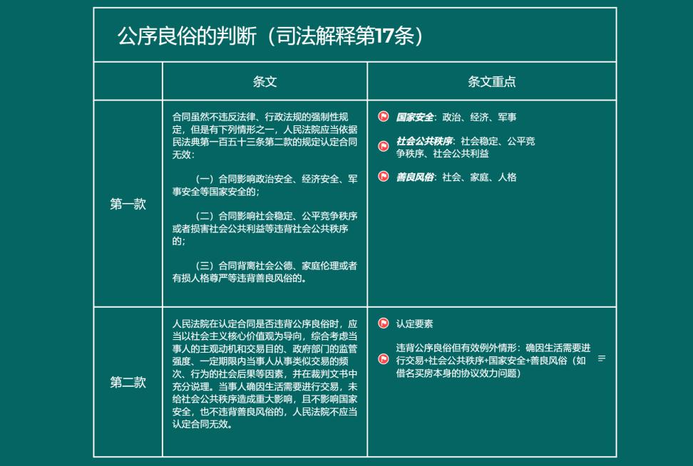 五、合同编通则司法解释第17条——公序良俗的细化