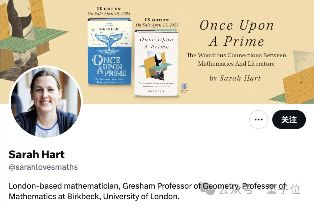 这本书题为Once Upon a Prime,篇幅长达320多页,作者是格雷沙姆学院教授、伦敦大学伯克贝克学院名誉教授Sarah Hart。酷爱数学的Sarah发现,人们对数学和音乐或绘画作品之间联系已经比较了解,但对文学中的数学认识还不够。