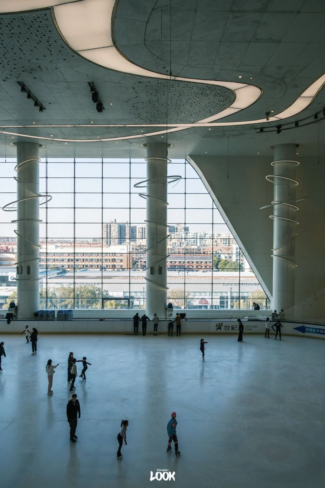 新开的普陀的国金冰上运动中心是专业体育馆里的滑冰场,这里不止有滑冰场,还有游泳馆、击剑馆、滑板馆等,超大规模,专业程度更不用多说。