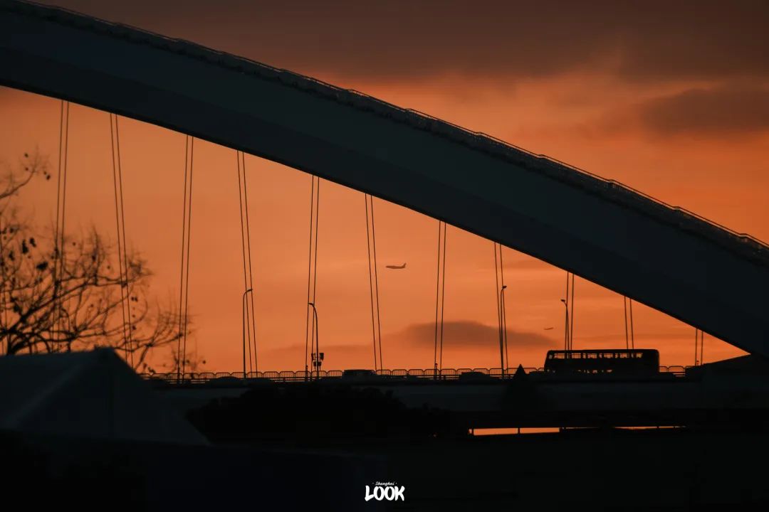 离开滑冰场的时候我们看到了久违的日落,桥上是巴士,空中是飞机,桥下是即将消失的太阳,这一幕好美好~\溜冰指路⛸️/