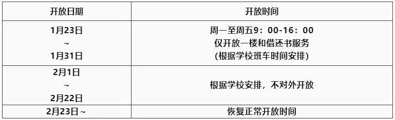 2. A教、D教、E教、信息楼:1月22日—2月19日期间停止开放,2月20日起恢复开放。